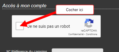Pour vous connecter, il faut connaître la référence de votre camping et le mot de passe. Vous pouvez retrouver la référence de votre camping : La référence de votre camping est affichée dans la page de votre camping sur notre site. Vous devez donc rechercher votre camping dans notre site et accéder à la fiche. Vous y trouverez la référence